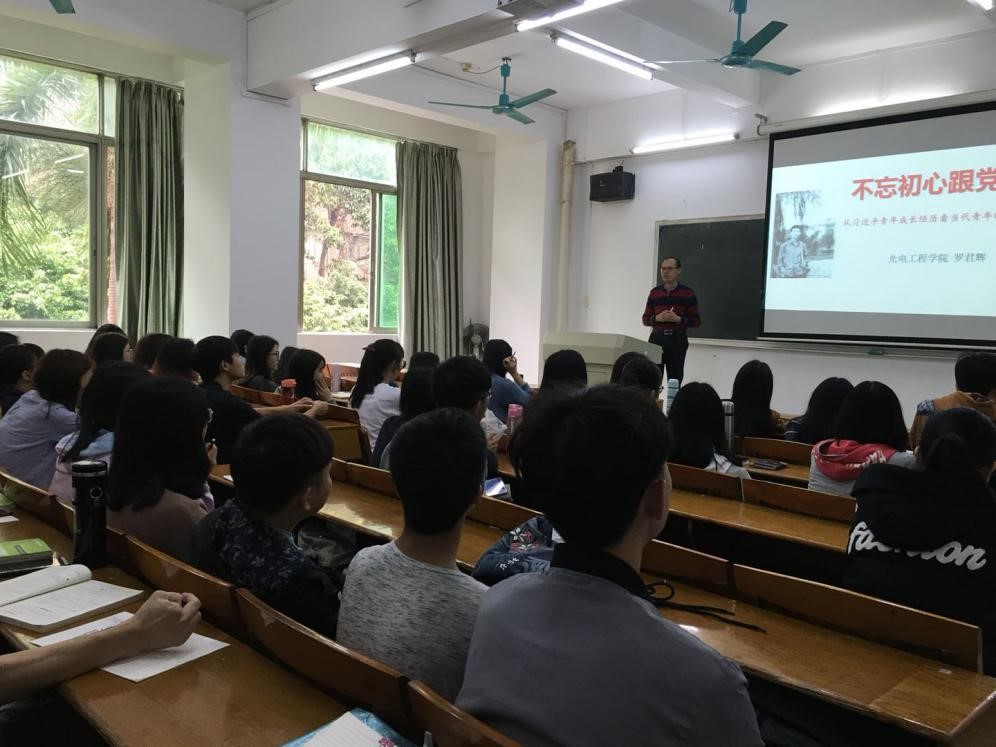 3月26日下午,公司党总支书记罗君辉在第一教学楼202室为员工讲授了新学期“思政第一课”,公司辅导员、2017级全体员工到场听课。