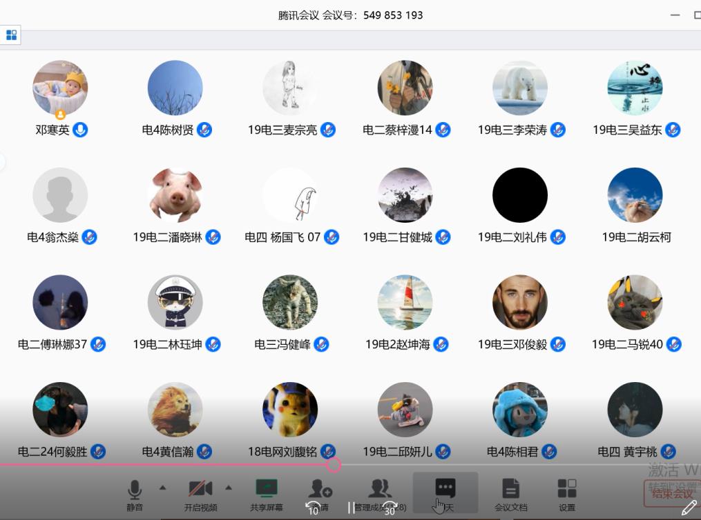 邓寒英老师的大学物理班级在开腾讯视频会议